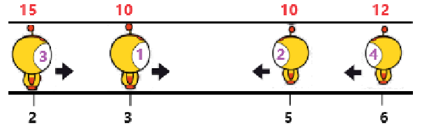 机器人1和机器人2在位置 4 发生碰撞,两个机器人能量值相同,因此碰撞后都被移走。机器人3和机器人4再次碰撞,机器人4被移走,机器人3的能量值减 1,能量值变为 14。