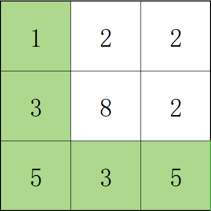路径 1,2,3,4,5 的相邻格子差值绝对值最大为 1 ,比路径 1,3,5,3,5 更优。
