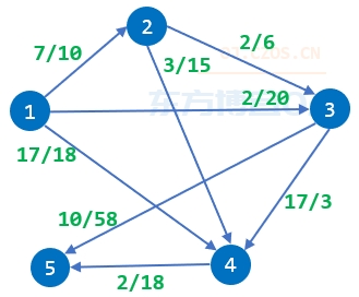 沿 1 -> 4 单向高速路去 4 号城市,该高速路不在 1 号城市到 5 号城市最短路的路线上,因此不高兴度增加 1 。但该高速路在 1 号城市到 5 号城市拥挤度之和最小的路线上。
