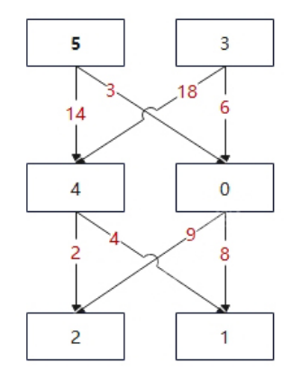 最小代价的路径是 5 -> 0 -> 1 。