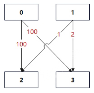 途经最小总代价为 1 + 1 + 2 = 4 。
