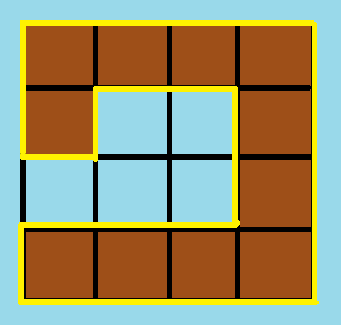 下图所示 4 \times 4 区域中的岛屿周长为 24