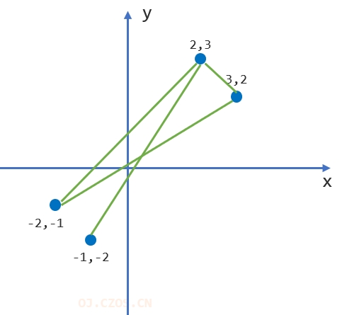 接下来 N 行,每行读入两个整数 X_i,Y_i ,代表平面上第 i 个点的坐标。