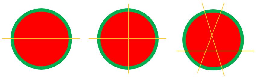 老师借给了小 A 一把锋利的西瓜刀,小 A 可以借助这把西瓜刀,每次在西瓜的圆形切面上,完整且不弯曲的切一刀。